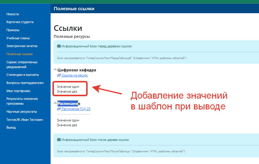 Инструкция по работе с полезными ссылками в личном кабинете студента