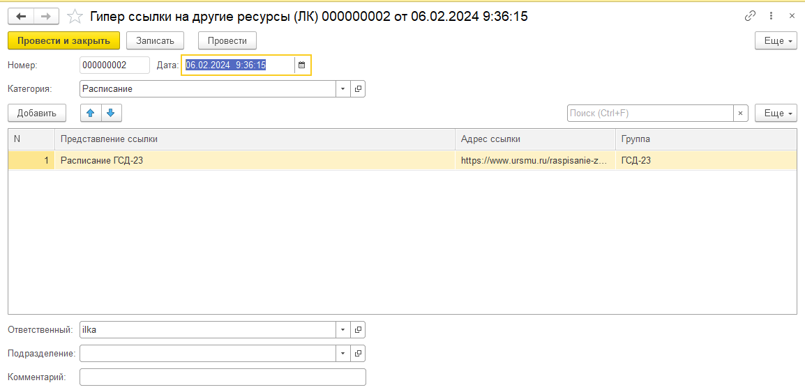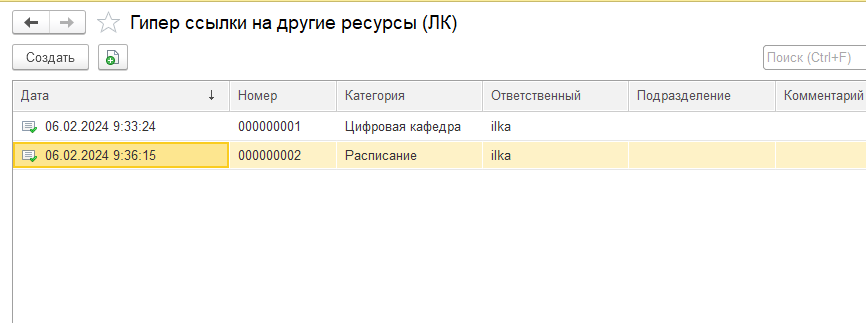 1. Учет гиперссылок на другие ресурсы организуется с помощью документа Гиперссылки на другие ресурсы.