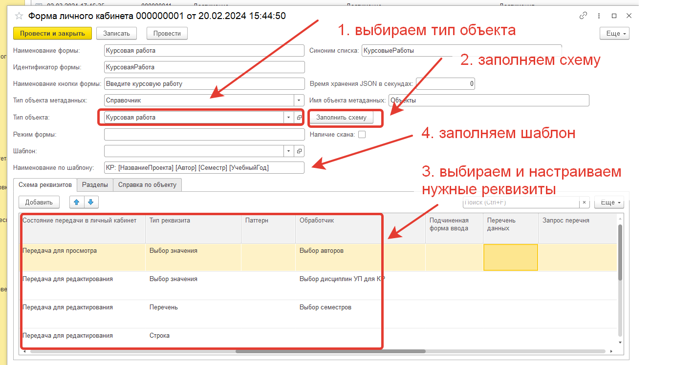 - заполнить схему реквизитов объекта